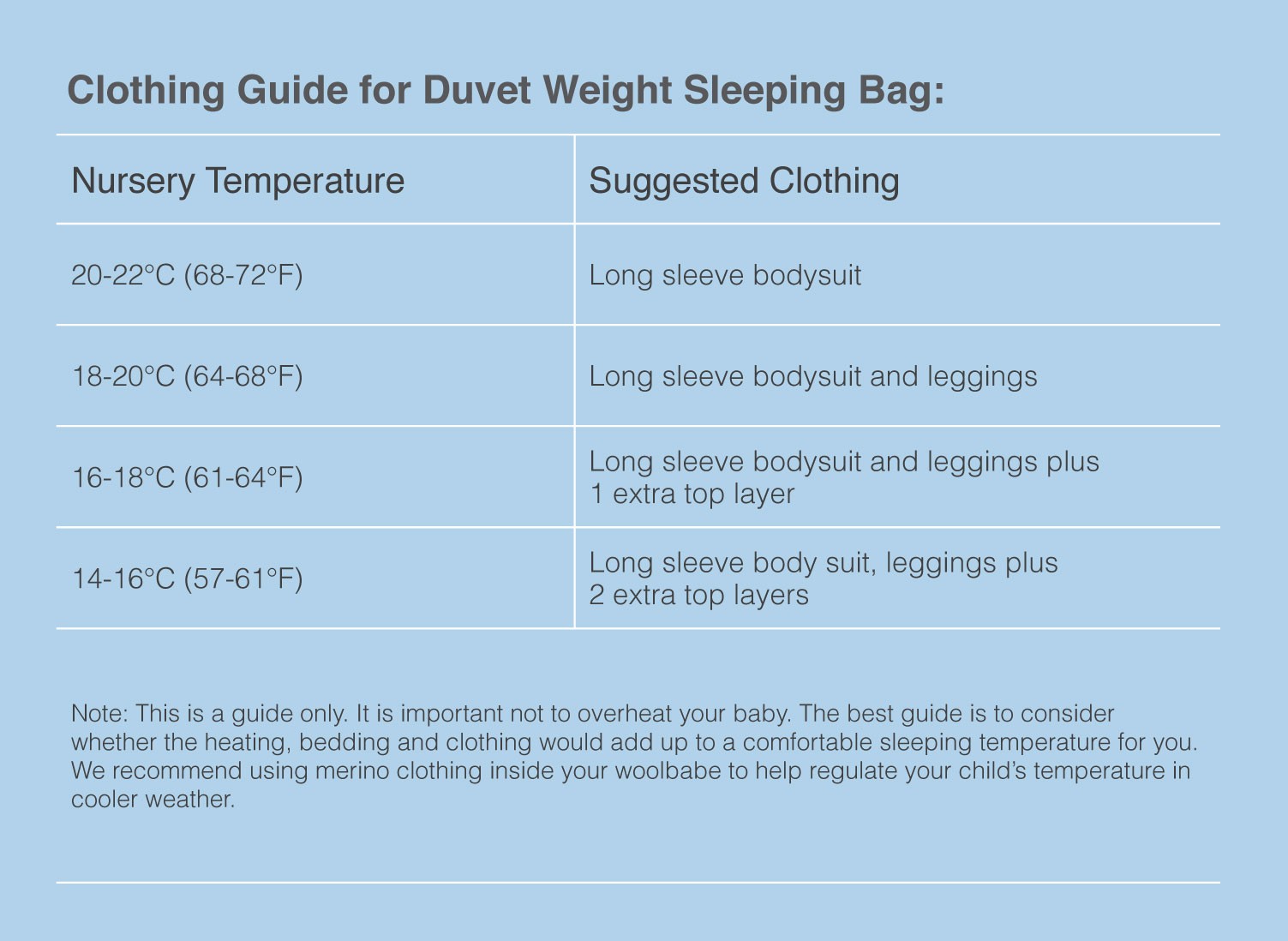 - I was finding it hard to keep my 9 month old warm at night, no chance of being able to put this little one under blankets! So I brought one of these Woolbabe Duvet sleeping bags, and the difference is amazing! He now is nice and warm in the mornings when I get him out of bed!! Fantastic product and well worth the money!! thx !! (Posted on 15/05/2013)